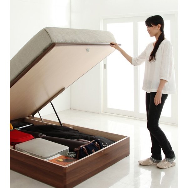 kag-41019 セミダブルベッド 一人暮らし SD マットレス付き 跳ね上げ式ベッド ガス圧 ベッド下 収納付き 大容量 ヘッドボード 薄型 ヴィンテージ メンズ モダン レトロ