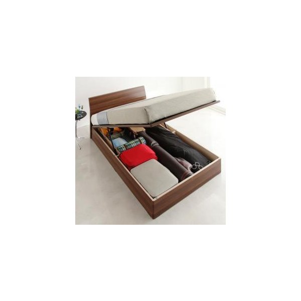 セミダブルベッド 一人暮らし SD マットレス付き 跳ね上げ式ベッド ガス圧 ベッド下 収納付き 大容量 フラットヘッドボード 薄型 ヴィンテージ メンズ モダン レトロ