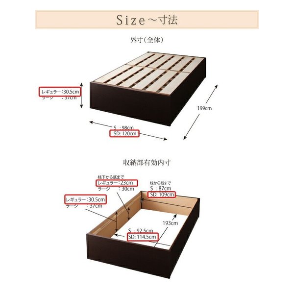 セミダブル:(約)幅109×長さ193×深さ30cm