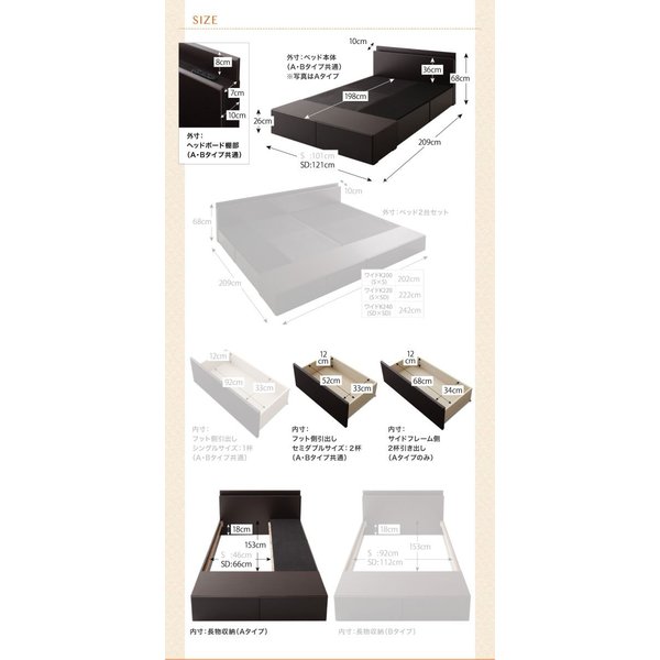 ・ABタイプ共通:シングル101cm、セミダブル121cm