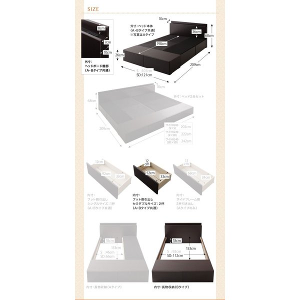 ・ABタイプ共通:シングル101cm、セミダブル121cm