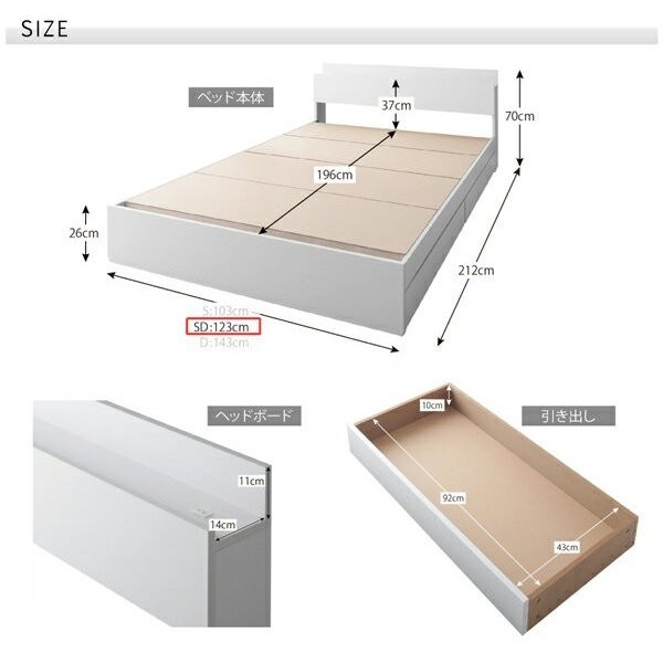 kag-41840 セミダブルベッド 一人暮らし SD フレームのみ チェストベッド ミドル ベッド下収納 引き出し 大容量 宮 棚 携帯 リモコン 収納 コンセント スマホ 充電 電気
