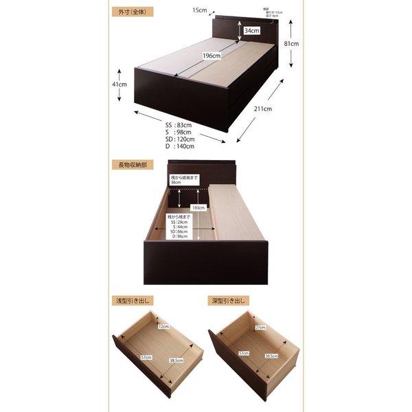 セミダブル: (約)幅66X長さ193X深さ36cm