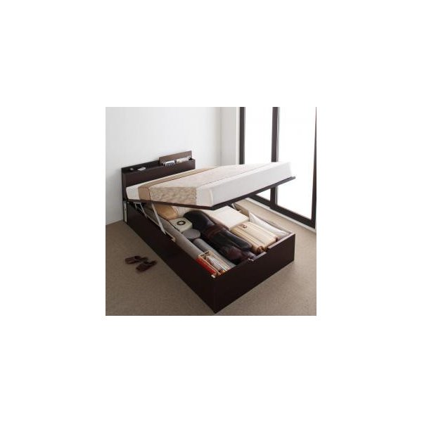 セミダブルベッド 一人暮らし SD マットレス付き 跳ね上げ式ベッド ガス圧 ベッド下 収納付き 大容量 宮付き ヘッドボード 枕元 棚 ラック 携帯置き ティッシュ置き メガネ置き リモコン 頭上 収納 コンセント ゲーム ケーブル スマホ 充電 電気 デザイナーズ ホテル モダン 高級 メンズ