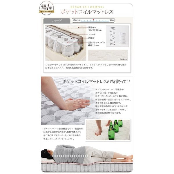 ※ベッドのフレームはスプリングマットレス使用時の基準で強度計算されております。