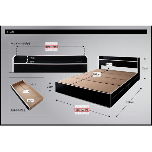 セミダブルベッド 一人暮らし SD フレームのみ チェストベッド ミドル ベッド下収納 引き出し付き 大容量 宮付き ヘッドボード 枕元 棚 ラック 携帯置き ティッシュ置き メガネ置き リモコン 頭上 収納 コンセント ゲーム ケーブル スマホ 充電 電気 ツートンカラー モノトーン デザイナーズ ホテル モダン 高級 メンズ