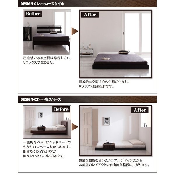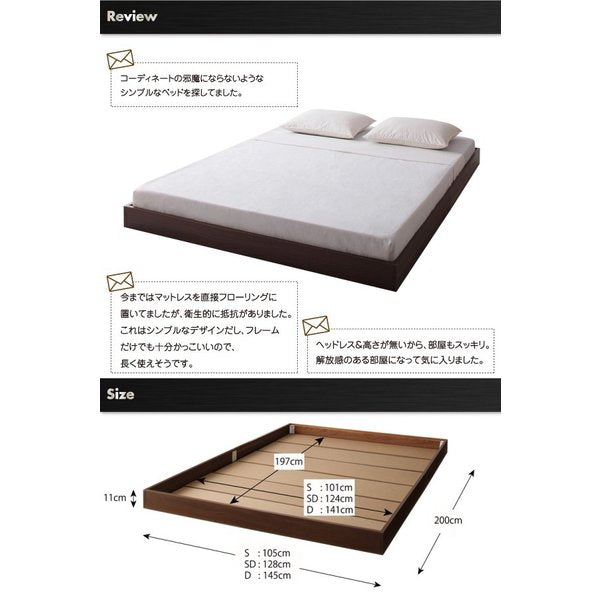 kag-41998 セミダブルベッド 一人暮らし SD マットレス付き ローベッド ロータイプ フロア 低床 低い ヘッドレス デザイナーズ ホテル モダン 高級 メンズ