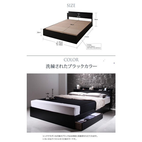 セミダブルベッド 一人暮らし SD マットレス付き チェストベッド ミドル ベッド下収納 引き出し付き 大容量 宮付き ヘッドボード 枕元 棚 ラック 携帯置き ティッシュ置き メガネ置き リモコン 頭上 収納 コンセント ゲーム ケーブル スマホ 充電 電気 デザイナーズ ホテル モダン 高級 メンズ