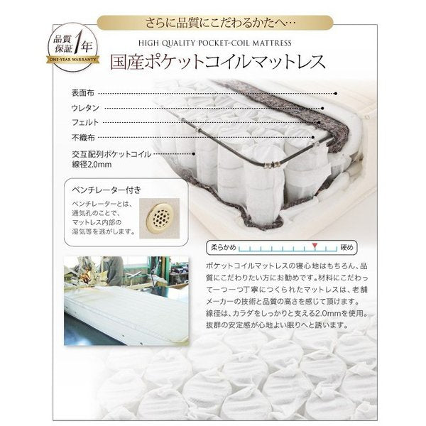 ※ベッドのフレームはスプリングマットレス使用時の基準で強度計算されておりますので、