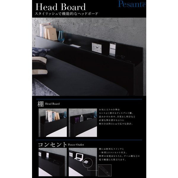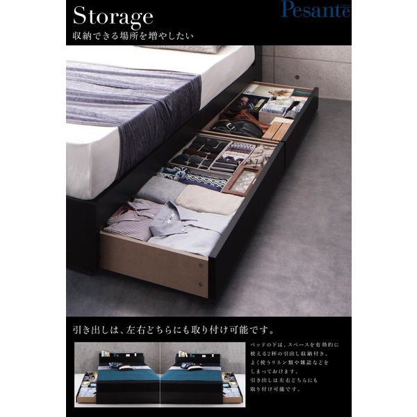 セミダブルベッド 一人暮らし SD マットレス付き チェストベッド ミドル ベッド下収納 引き出し付き 大容量 宮付き ヘッドボード 枕元 棚 ラック 携帯置き ティッシュ置き メガネ置き リモコン 頭上 収納 照明 読書灯 ライト 読書 電気 コンセント ゲーム ケーブル スマホ 充電 デザイナーズ ホテル モダン 高級 メンズ