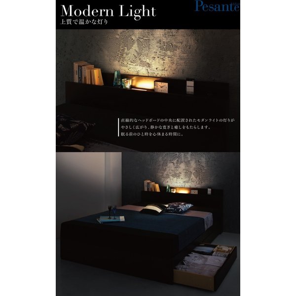 セミダブルベッド 一人暮らし SD マットレス付き チェストベッド ミドル ベッド下収納 引き出し付き 大容量 宮付き ヘッドボード 枕元 棚 ラック 携帯置き ティッシュ置き メガネ置き リモコン 頭上 収納 照明 読書灯 ライト 読書 電気 コンセント ゲーム ケーブル スマホ 充電 デザイナーズ ホテル モダン 高級 メンズ