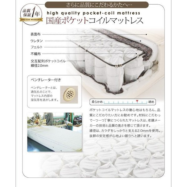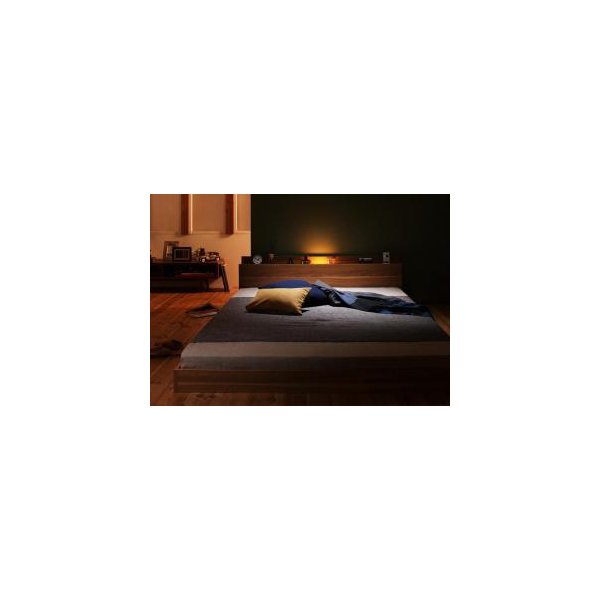 kag-42673 セミダブルベッド 一人暮らし マットレス付き ローベッド 低い 宮 棚 携帯 リモコン 収納 照明 読書 ライト 電気 コンセント スマホ 充電 ヴィンテージ