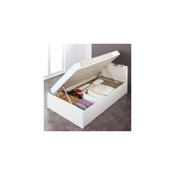 セミダブルベッド 一人暮らし SD マットレス付き 跳ね上げ式ベッド ガス圧 ベッド下 収納付き 大容量 宮付き ヘッドボード 枕元 棚 ラック 携帯置き ティッシュ置き メガネ置き リモコン 頭上 収納 コンセント ゲーム ケーブル スマホ 充電 電気 白 デザイナーズ ホテル モダン 高級 メンズ ホワイト