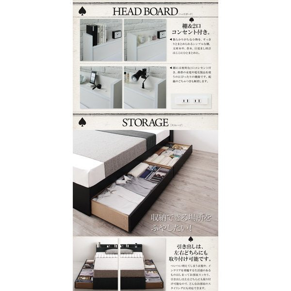 kag-43316 セミダブルベッド 一人暮らし マットレス付き チェスト ベッド下 収納 引き出し 大容量 宮 棚 携帯 リモコン コンセント スマホ 充電 布団可 すのこ 通気性 カビ