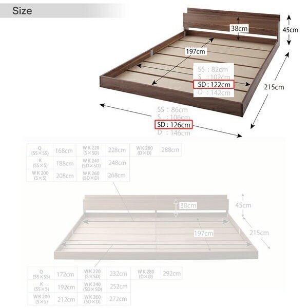 クイーン(SSxSS):(約)幅172x長さ215x高さ45cm