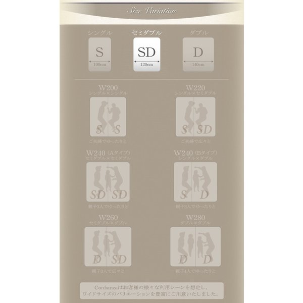 セミダブル:(約)幅120x長さ195x高さ17cm