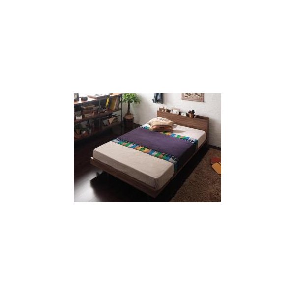 kag-43605 セミダブルベッド 一人暮らし マットレス付き ローベッド 低い 宮 棚 携帯 収納 コンセント スマホ 充電 布団可 フラット床板 脚 足 北欧 おしゃれ アンティーク