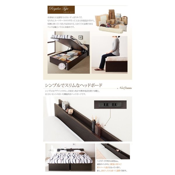 セミダブルベッド 一人暮らし SD マットレス付き 跳ね上げ式ベッド ガス圧 ベッド下 収納付き 大容量 宮付き ヘッドボード 枕元 棚 ラック 携帯置き ティッシュ置き メガネ置き リモコン 頭上 収納 コンセント ゲーム ケーブル スマホ 充電 電気 デザイナーズ ホテル モダン 高級 メンズ
