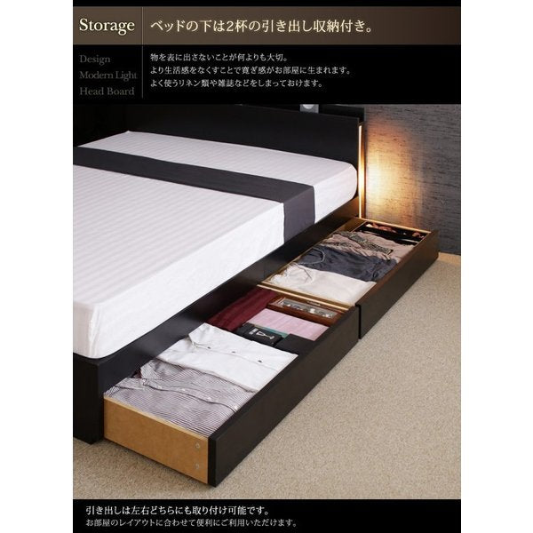 kag-43643 セミダブルベッド 一人暮らし SD マットレス付き チェスト ベッド下 収納 引き出し 大容量 宮 棚 携帯 リモコン 照明 読書 ライト 電気 コンセント スマホ 充電