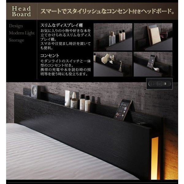 セミダブルベッド 一人暮らし SD マットレス付き チェストベッド ミドル ベッド下収納 引き出し付き 大容量 宮付き ヘッドボード 枕元 棚 ラック 携帯置き ティッシュ置き メガネ置き リモコン 頭上 収納 照明 読書灯 ライト 読書 電気 コンセント ゲーム ケーブル スマホ 充電 デザイナーズ ホテル モダン 高級 メンズ