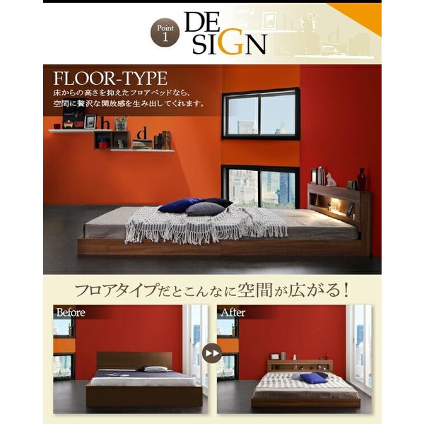 セミダブルベッド 一人暮らし SD フレームのみ ローベッド ロータイプ フロア 低床 低い 宮付き ヘッドボード 枕元 棚 ラック 携帯置き ティッシュ置き メガネ置き リモコン 頭上 収納 照明 読書灯 ライト 読書 電気 コンセント ゲーム ケーブル スマホ 充電 ヴィンテージ メンズ モダン レトロ