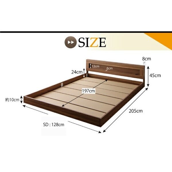 セミダブルベッド 一人暮らし SD マットレス付き ローベッド ロータイプ フロア 低床 低い 宮付き ヘッドボード 枕元 棚 ラック 携帯置き ティッシュ置き メガネ置き リモコン 頭上 収納 照明 読書灯 ライト 読書 電気 コンセント ゲーム ケーブル スマホ 充電 ヴィンテージ メンズ モダン レトロ