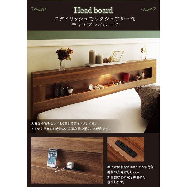 kag-43718 セミダブルベッド 一人暮らし マットレス付き チェスト ベッド下 収納 引き出し 大容量 宮 棚 携帯 照明 読書 ライト コンセント スマホ 充電 ヴィンテージ