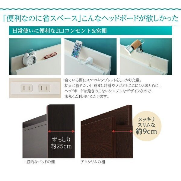 ※ベッドのフレームはスプリングマットレス使用時の基準で強度計算されております。そのため、床板に直接布団などを敷いてご利用になりますと破損の原因となる場合があり、大変危険です。床板の上に必ずスプリングマットレスを敷いてご利用ください。