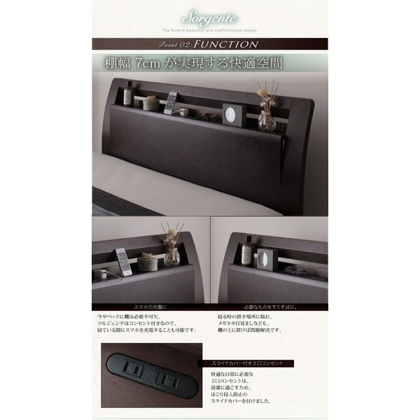 kag-44005 セミダブルベッド 一人暮らし SD マットレス付き 脚 足 宮 ヘッドボード 枕元 棚 ラック 携帯 メガネ リモコン 頭上 収納 コンセント スマホ 充電 電気 モダン