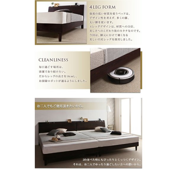 kag-44211 セミダブルベッド 一人暮らし SD フレームのみ 脚 足 宮 枕元 棚 携帯 メガネ リモコン 頭上 収納 コンセント スマホ 充電 電気 すのこ 通気性 除湿 カビ モダン