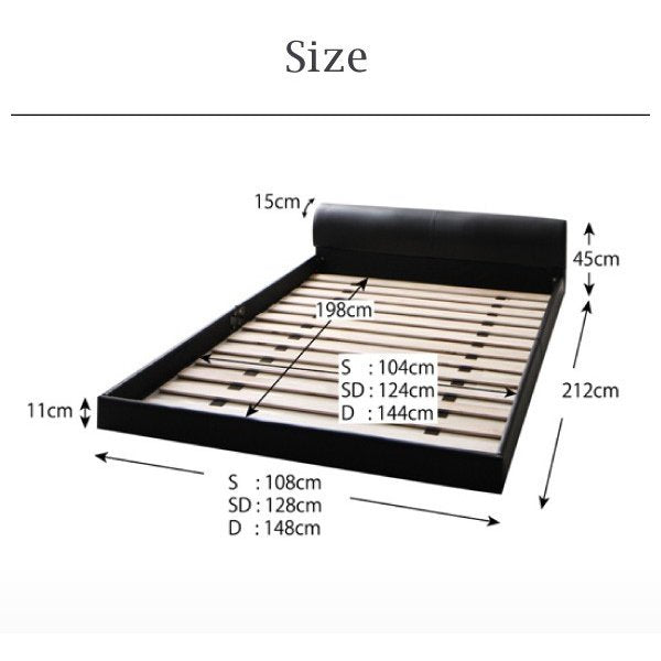 セミダブルベッド 一人暮らし SD フレームのみ ローベッド ロータイプ フロア 低床 低い 背もたれ ヘッドボード ヘッドレスト 読書 クッション 寄りかかる すのこ 通気性 除湿 カビ レザー ゴージャス 高級 豪華 ゴシック デザイナーズ ホテル モダン メンズ 姫系