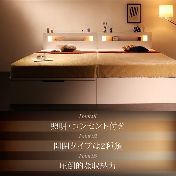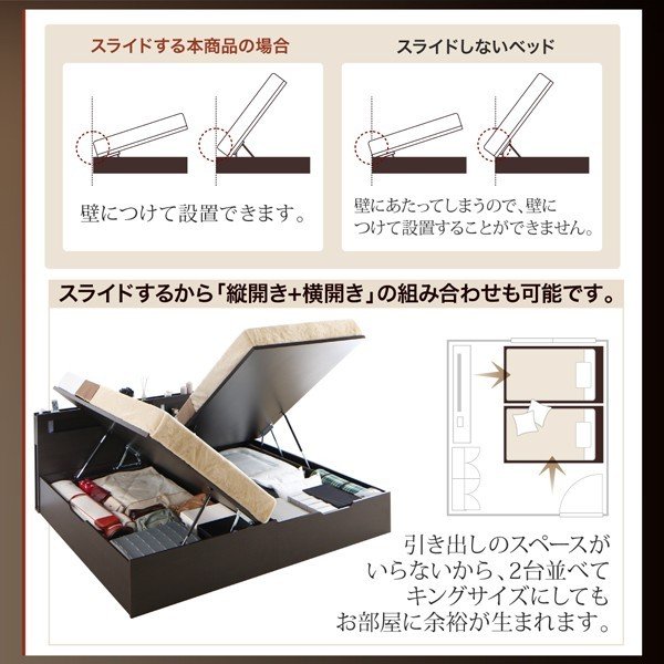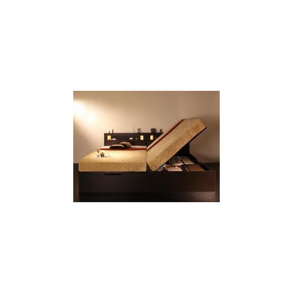 kag-46998 セミダブルベッド 一人暮らし マットレス付き 跳ね上げ式ベッド ガス圧 ベッド下 収納付き 大容量 宮 棚 携帯 収納 照明 読書 ライト コンセント スマホ 充電