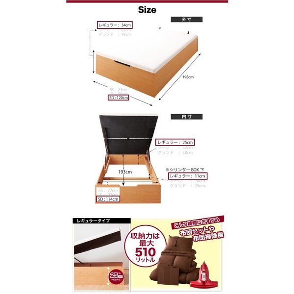 簡単組立・らくらく搬入_ガス圧式大容量跳ね上げベッド