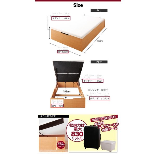セミダブルベッド 一人暮らし SD マットレス付き 跳ね上げ式ベッド ガス圧 ベッド下 収納付き 大容量 ヘッドレス ヘッドボードなし デザイナーズ ホテル モダン 高級 メンズ