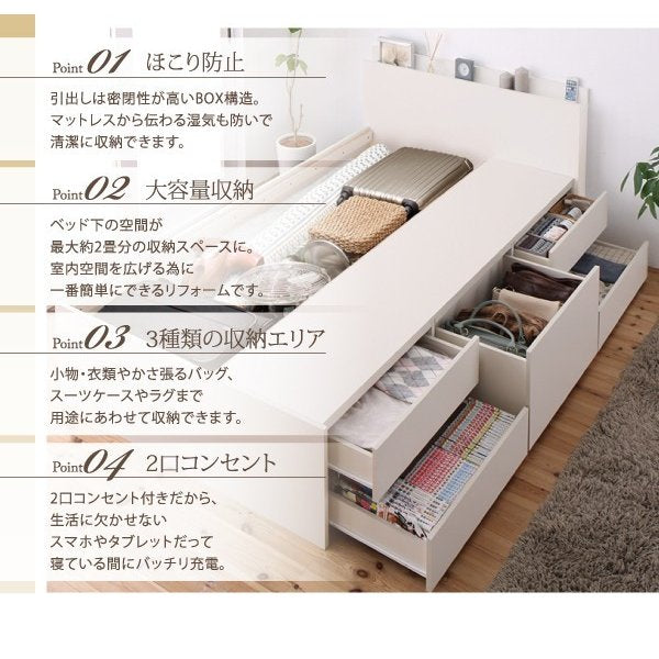 セミダブルベッド 一人暮らし SD フレームのみ チェストベッド ミドル ベッド下収納 引き出し付き 大容量 宮付き ヘッドボード 枕元 棚 ラック 携帯置き ティッシュ置き メガネ置き リモコン 頭上 収納 コンセント ゲーム ケーブル スマホ 充電 電気 北欧 おしゃれ モダン アンティーク