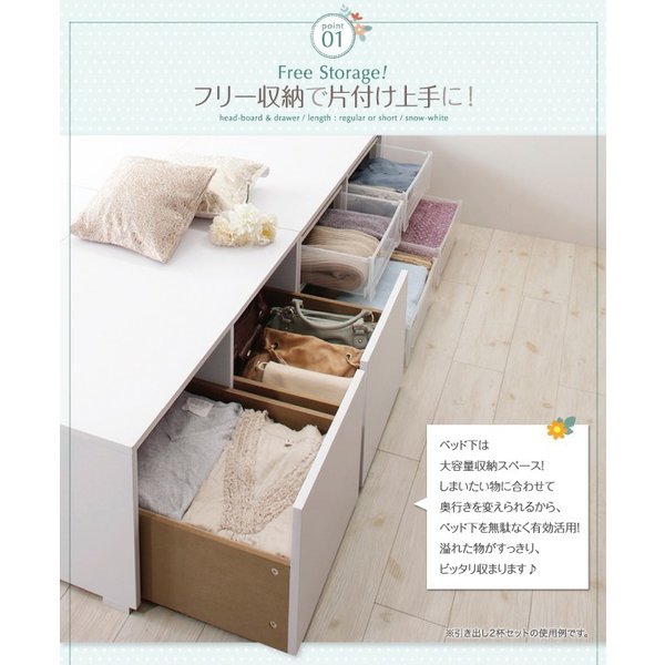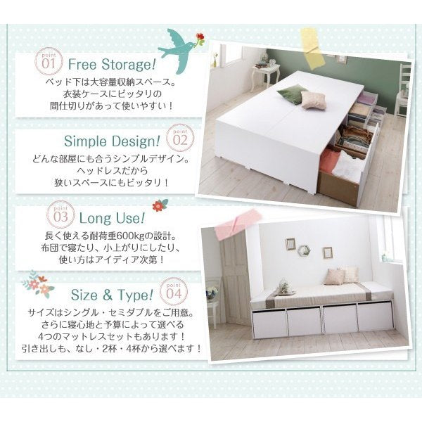 薄型標準ポケットコイルマットレス付き 引出し4個 セミダブル