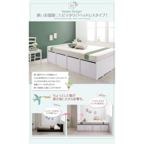 kag-47793 セミダブルベッド 一人暮らし SD マットレス付き チェストベッド ミドル ベッド下収納 引き出し 大容量 ヘッドレス 布団可 フラット床板 箱型 モダン 高級