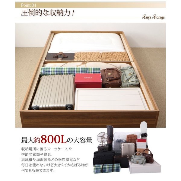 kag-47845 セミダブルベッド 一人暮らし SD マットレス付き ベッド下収納 収納付き 大容量 高い 床下収納スペース 全面収納 ヘッドレス ホテル モダン 高級 布団対応