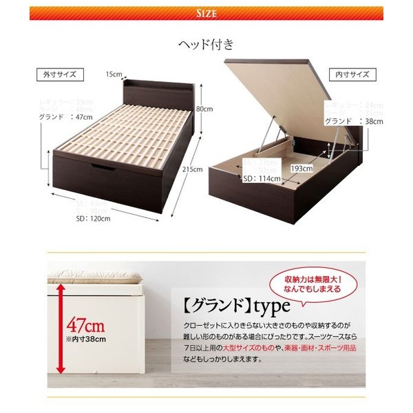 セミダブルベッド 一人暮らし SD フレームのみ 跳ね上げ式ベッド ガス圧 ベッド下 収納付き 大容量 宮付き ヘッドボード 枕元 棚 ラック 携帯置き ティッシュ置き メガネ置き リモコン 頭上 収納 コンセント ゲーム ケーブル スマホ 充電 電気 布団 直置き マットレス不要 すのこ 通気性 除湿 カビ デザイナーズ ホテル モダン 高級 メンズ
