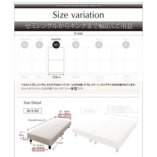 セミダブル:幅120x長さ195x高さ24cm/31kg