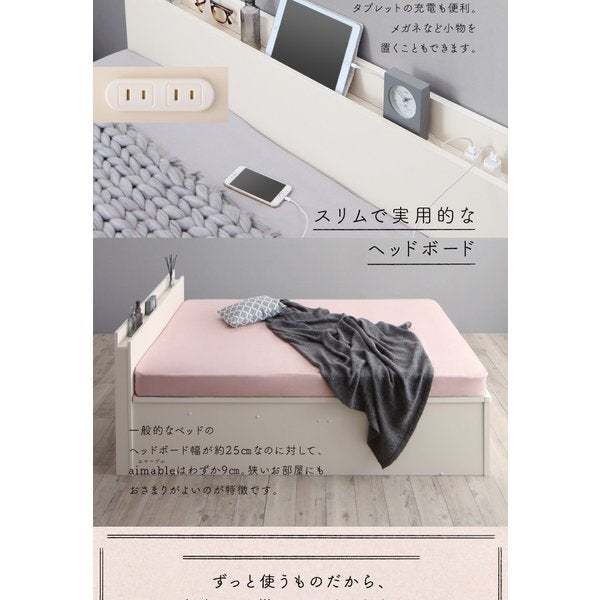 kag-48834 セミダブルベッド 一人暮らし マットレス付き 跳ね上げ式ベッド ガス圧 ベッド下 収納付き 大容量 宮 棚 携帯 リモコン 収納 携帯 スマホ 充電 電気 コンセント