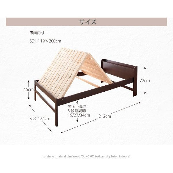 kag-48926 セミダブルベッド 一人 フレーム ベッド下 収納スペース 高い 床下 全面収納 高さ調節 ロー 低い 棚 携帯 コンセント スマホ 布団可 すのこ 通気性 カビ 脚 足