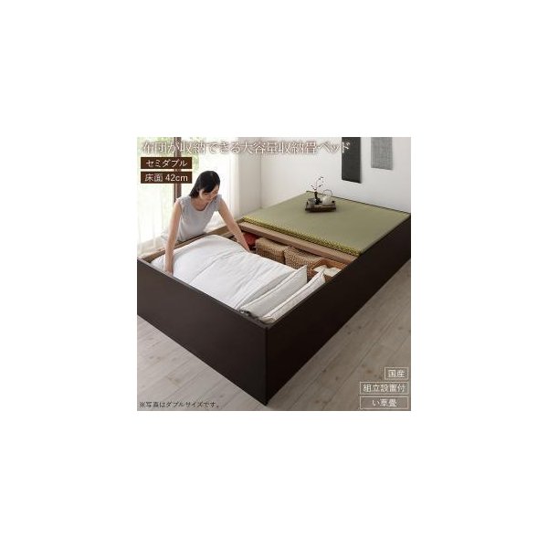 kag-48937 セミダブルベッド 一人 フレーム 日本製 国産 畳 硬め 腰痛 通気性 カビ 湿気 和室 ベッド下 収納 高い 床下収納スペース 全面収納 ヘッドレス 布団可 布団収納