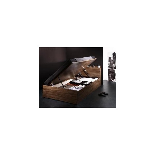 セミダブルベッド 一人暮らし SD マットレス付き 跳ね上げ式ベッド ガス圧 ベッド下 収納付き 大容量 宮付き ヘッドボード 枕元 棚 ラック 携帯置き ティッシュ置き メガネ置き リモコン 頭上 収納 コンセント ゲーム ケーブル スマホ 充電 電気 ヴィンテージ メンズ モダン レトロ
