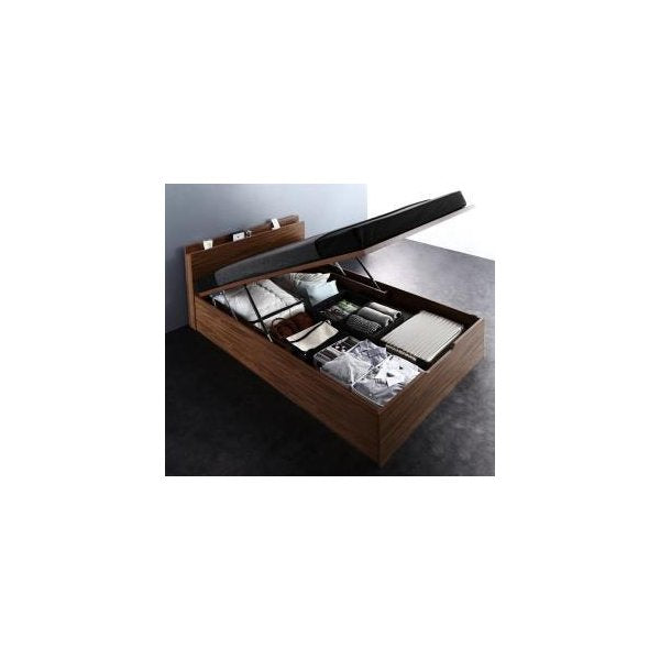 セミダブルベッド 一人暮らし SD マットレス付き 跳ね上げ式ベッド ガス圧 ベッド下 収納付き 大容量 宮付き ヘッドボード 枕元 棚 ラック 携帯置き ティッシュ置き メガネ置き リモコン 頭上 収納 コンセント ゲーム ケーブル スマホ 充電 電気 ヴィンテージ メンズ モダン レトロ