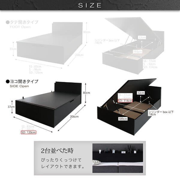要組立 薄型標準ポケットコイルマットレス付き 横開 セミダブル 深さラージ