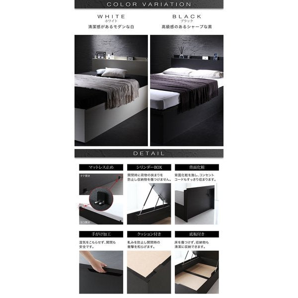 セミダブルベッド 一人暮らし SD マットレス付き 跳ね上げ式ベッド ガス圧 ベッド下 収納付き 大容量 宮付き ヘッドボード 枕元 棚 ラック 携帯置き ティッシュ置き メガネ置き リモコン 頭上 収納 コンセント ゲーム ケーブル スマホ 充電 電気 ヴィンテージ メンズ モダン レトロ