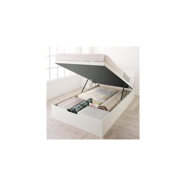 セミダブルベッド 一人暮らし SD マットレス付き 跳ね上げ式ベッド ガス圧 ベッド下 収納付き 大容量 フラットヘッドボード 薄型 白 デザイナーズ ホテル モダン 高級 メンズ 姫系