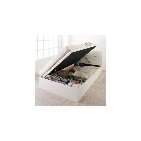 セミダブルベッド 一人暮らし SD マットレス付き 跳ね上げ式ベッド ガス圧 ベッド下 収納付き 大容量 フラットヘッドボード 薄型 白 デザイナーズ ホテル モダン 高級 メンズ 姫系