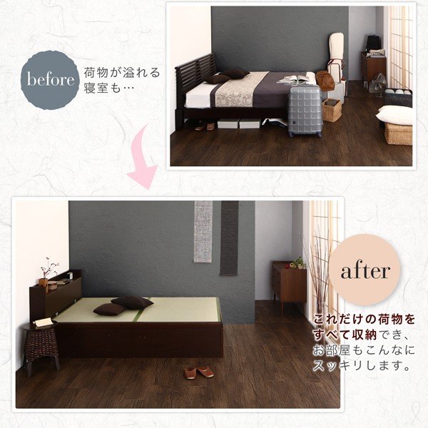 kag-49446 セミダブルベッド 一人 フレーム 跳ね上げ式 ガス圧 ベッド下 収納 国産 日本製 畳 硬め 布団可 腰痛 通気性 カビ 湿気 和室 棚 携帯 コンセント スマホ
